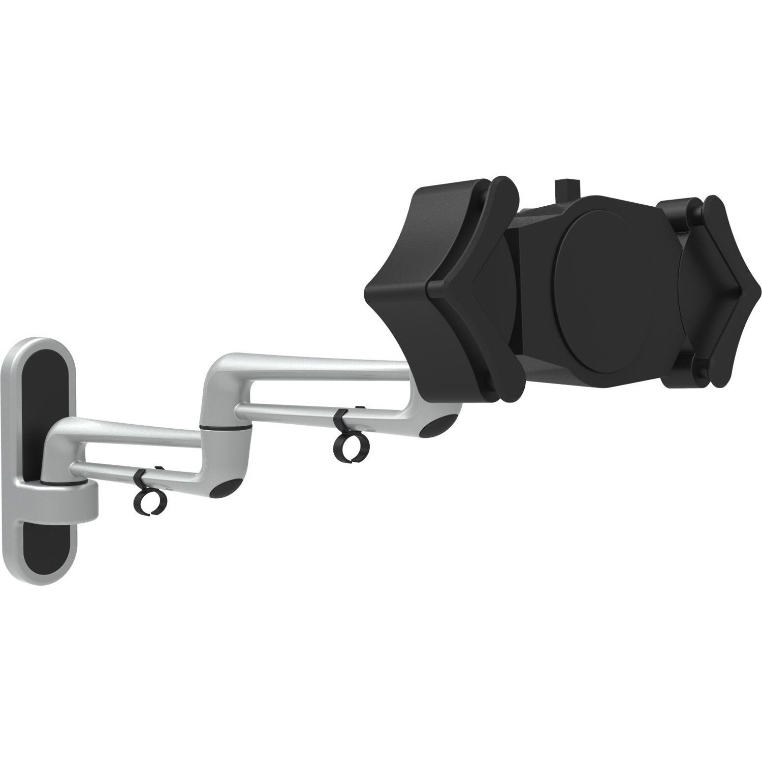 Modern aesthetics and unbeatable functionality combine in this elegant, versatile wall mount for tablets. Perfect for classrooms, conference rooms, doctors' offices, or living rooms, this powerful holder makes your tablet the centerpiece of any space. 3 flexible hinges and an extremely maneuverable ball socket allow for virtually infinite positioning options, while a 360 degree rotating tablet holder enables quick shifts between portrait and landscape orientations. The arm mount pairs this range of customization with an ingenious space saving design, from its maximum extension to folding nearly flush against the wall.Manage your charge cable with the included set of cable management grip clips, which attach along the arm. This arm mounts easily to any wall with a set of included hardware.